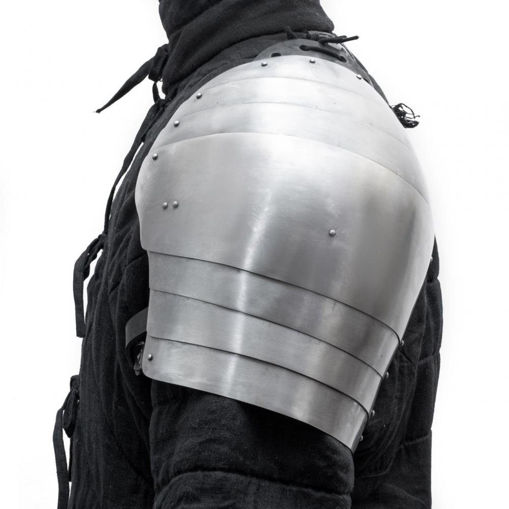 These Italian Plate Shoulders are expertly forged from high-quality steel, designed to replicate the protective shoulder armor worn by Italian knights during the Renaissance period. Featuring carefully crafted plates that provide full articulation and excellent mobility, these shoulder guards are both functional and visually striking. The smooth finish highlights the traditional craftsmanship, while adjustable leather straps ensure a secure and comfortable fit. Perfect for historical reenactments, HMB battles, LARP events, or collectors seeking authentic period armor, these plate shoulders offer a perfect blend of protection, style, and historical authenticity.