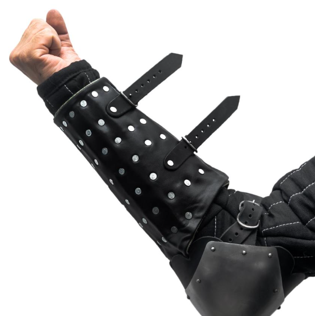 These Leather Bracers with Elbows provide sturdy and flexible protection, crafted from high-quality leather designed to shield your forearms and elbows during combat or reenactment events. The bracers feature reinforced padding around the elbow area for added safety without sacrificing mobility. Adjustable straps ensure a secure fit for different arm sizes, making them comfortable for extended wear. Ideal for historical reenactments, LARP, HEMA, or cosplay, these bracers combine functionality with authentic medieval style to enhance your armor setup.