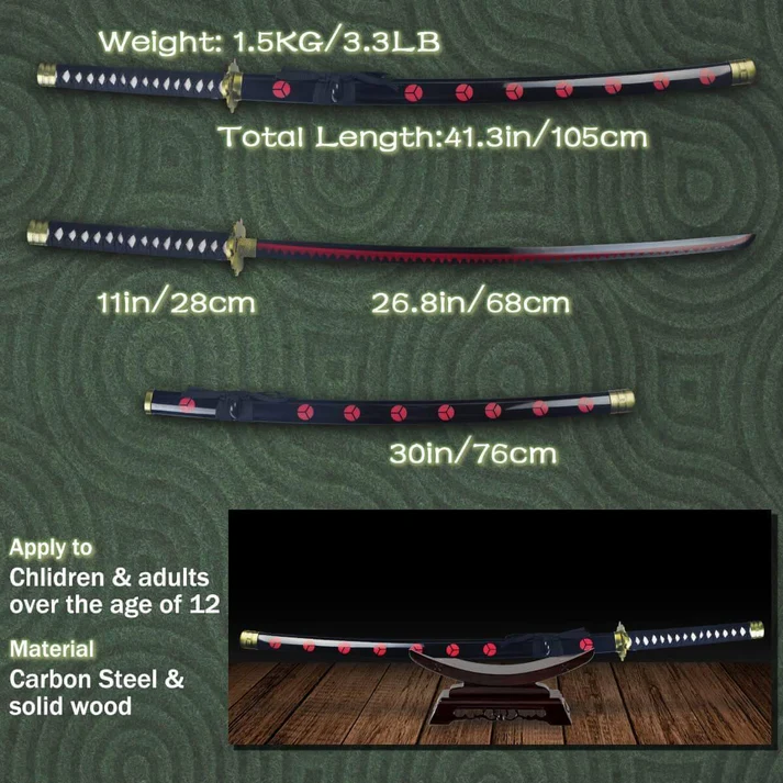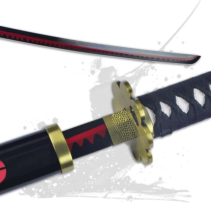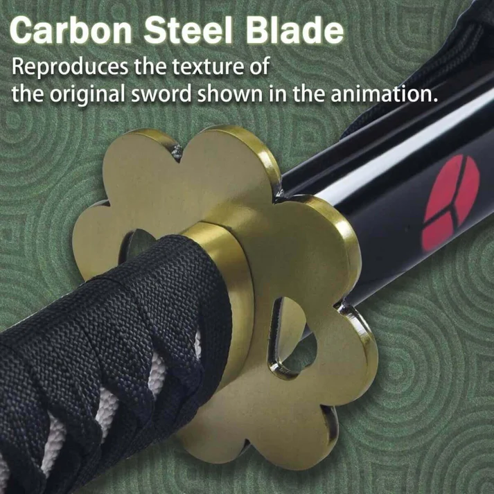Step into the world of One Piece and wield the power of Roronoa Zoro’s legendary Enma Katana with this finely crafted 41-inch replica. Made from high-quality carbon steel, this katana combines durability with an authentic design that captures every detail from the anime. The blade features a sharp edge and a traditional hamon pattern, showcasing the craftsmanship of real Japanese sword-making techniques. The handle is wrapped with black and purple cord, mirroring Enma’s original look and providing a secure grip during display or cosplay. This replica is ideal for fans who want to embody the spirit of Zoro and master the art of swordsmanship. Whether displayed as a centerpiece or used as part of a cosplay ensemble, the Enma Katana replica delivers both beauty and functionality.