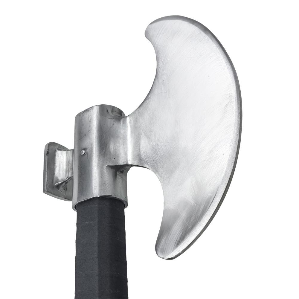 The Poleaxe Type 1 is a powerful medieval weapon designed for HMB and Buhurt combat. With its long reach and tempered steel head, it combines striking force, durability, and control for full-contact fighting.